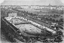 Die nach Plänen des Architekten Heinrich Dimpfel gestaltete Anlage öffnete am 8. Juli 1866 ihre Pforten. Zunächst war das Bad, das ein 95 m langes und 28 m breites Schwimmbecken besaß, nur für Männer zugänglich.[1] Am 16. Mai 1869 öffnete auf dem Gelände zudem das erste Freiluft-Damenschwimmbad Deutschlands, das bis in die 1940er-Jahre existierte. Die Unterhaltung der hauptsächlich aus Holz errichteten Anlagen des Bades erwies sich in den 1880er-Jahren als zu teuer. Deshalb wurde die Anlage nach Plänen von Max Pommer umgestaltet und 1890 neu eröffnet.