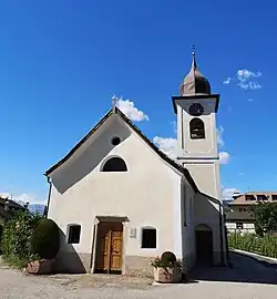 Die Ortsmitte ist durch die aus dem frühen 19. Jahrhundert rührende Heilig-Kreuz-Kapelle bestimmt. Der einfache Bau mit gerade abschließendem Chor, Lünetten- und Rundbogenfenstern wurde 1823 um den Turm mit Glockenhaube ergänzt und benediziert. Die Fresken mit dem hl. Urban (an der Decke), dem Lamm Gottes und der Kreuzigung Christi (in der Apsis) stammen von Albert Stolz und wurden 1937 ausgeführt.[7] Die Kirche wurde 1977 unter Denkmalschutz gestellt.
