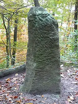 Die fragwürdige Datierung des Grenzsteins orientiert sich an einer 1355 ausgestellten Urkunde der im Niedergang begriffenen Grafen von Vaihingen, die ihren Sitz auf die nahe Burg Eselsberg verlegt hatten: Graf Konrad V. von Vaihingen und sein Sohn Heinrich verkauften dem Kloster Maulbronn am 22. August 1355 „ihren Wald, der Scheckstein genannt, bei Gündelbach“.[1] Von einem Grenzstein ist in dieser Urkunde keine Rede, sondern von einer Waldparzelle, deren Name sicher weit älter war und sich auf den nahen Berg Schreckstein bezog. Nachdem sie in die Hände des Klosters gekommen war, wurde sie Klosterwald genannt.