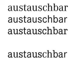 - Selbständige Schriftfamilien, die aufeinander bezogen sind, das heißt, die Proportionen der Mittel-, Ober- und Unterlängen sind identisch und auch die Buchstabenbreite der verschiedenen Schriften korrespondieren miteinander oder sind sogar gleich. Die gleiche Buchstabenbreite ermöglicht einen Austausch einzelner Zeichen, Wörter oder Zeilen.