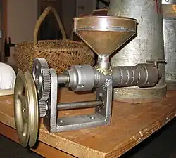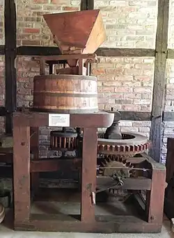 Eine Schrotmühle wird zum Mahlen von Körnern zu Schrot verwendet. In Brauereien wird sie zur Zerkleinerung von Malz zu Malzschrot verwendet.[1]