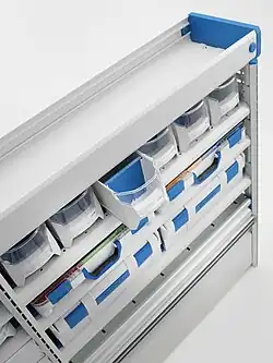 Schubladenregale sind Regalsysteme mit horizontalen oder vertikalen Ausziehschubladen; sie ermöglichen gute Platznutzung und Zugänglichkeit.