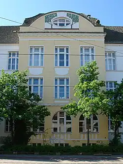 1903 entstand die Neue Schule Hastedt als Volksschule nach Plänen des Baurats Hugo Weber. Der dreigeschossige, 21-achsige, symmetrische, geputzte Hauptflügel an der Straße Auf der Hohwisch wurde straßenseitig gegliedert durch einen Mittelrisalit und an beiden Seiten durch jeweils einen Zwerchgiebel. Über dem dreiachsigen Risalit dominiert in dem Segmentbogen ein ovales Fenster, das in besonderem Maße durch den Jugendstil geprägt ist.