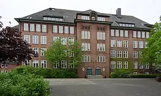 Das Schulgebäude wurde 1912 vom Architekten Fritz Schumacher entworfen.