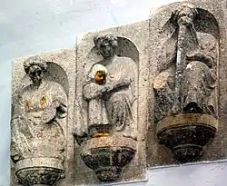 Das Foyer wird von einem Kreuzrippengewölbe gebildet, das sich auf mehrere mit Stuck geschmückte Säulen abstützt.