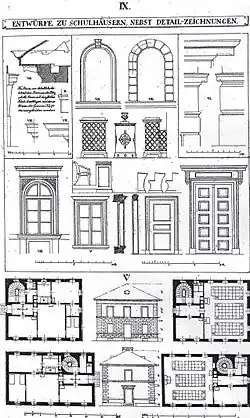 - Ludwig Klasen: Grundriss-Vorbilder von Gebäuden aller Art. Abth. III. Schulgebäude. Baumgartner, Leipzig 1884 (Digitalisat [benötigt Java-Plugin]).