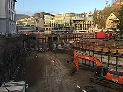 - ↑ a b Baustart Schulhausplatz Baden. (PDF, 2,5 MB) In: Mobilität. Departement Bau, Verkehr und Umwelt des Kantons Aargau, Juni 2015, abgerufen am 1. April 2017.