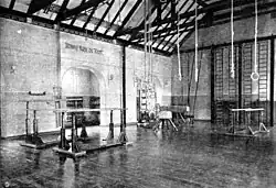 Sie war mit Geräten und allen Hilfsmitteln der Turnerei ausgestattet. Neen den üblichen Recks, Barren, Böcken, Pferden, Sprung- und Klettergerätschaften, fand man ebenfalls eine vollständige Ausstattung an Handgeräten wie Keulen, Hanteln, hölzernen und eisernen Stäben.