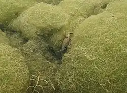 Wegen eines erhöhten Aufkommens von Blaualgen bestand von Juli 2022 bis zum Ende der Badesaison ein Badeverbot.[12] Daraufhin wurde 2022 eine Wasseraufbereitungsanlage installiert, um das Blaualgenwachstum einzudämmen.[13] Die Phosphateliminationsanlage soll Phosphate entfernen sowie gleichzeitig den Sauerstoffgehalt erhöhen und wälzt dabei pro Stunde 30.000 Liter Wasser um.[14] Das Badeverbot auf Grund von erhöhtem Blaualgenwachstum besteht auch 2023.