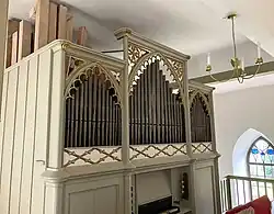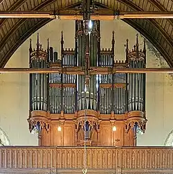 II/P | 38 | Neubau, 1894 pneumatischer Umbau durch Julius Strobel auf II/P, 27; 1991 Restaurierung durch Rösel & Hercher Orgelbau[7] |