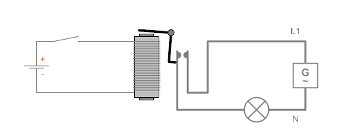 Betrieb eines Relais mit Freilaufdiode. Die Energie im Magnetfeld kann kontrolliert über die Diode abgebaut werden.