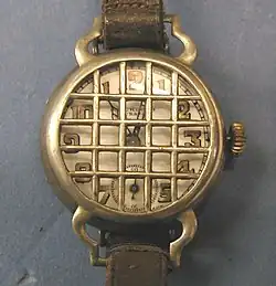 - ↑ J. Hein: Eine Schweizer Armbanduhr mit abstellbarem Weckwerk und Schutzgitter über dem Glas aus der Zeit zwischen 1914 und 1918. In: Uhren und Schmuck. Berlin (Ost), Heft 1, 1984, S. 22–24.