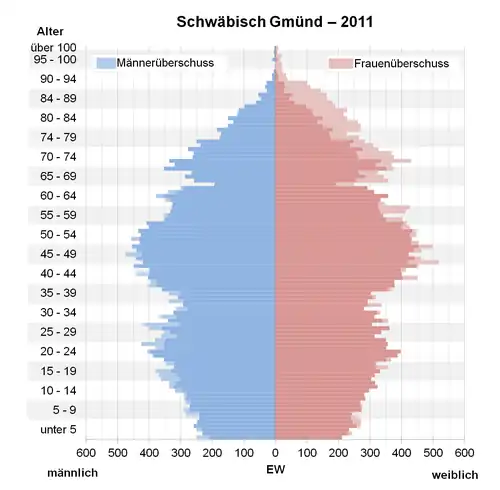- ↑ Datenbank Zensus 2011, Schwäbisch Gmünd, Alter + Geschlecht