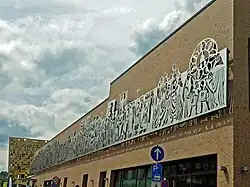 Für das Jahr 1266 ist der Besuch des 14-jährigen letzten Staufers Konradin durch eine „aput Gamundiam“ (dt.: in oder bei Gmünd) am 28. Dezember 1266 von ihm ausgestellte Urkunde belegt.[16] An dieses Ereignis erinnert der 60 × 4 Meter große, im Juli 2022 in einem ersten Teilabschnitt montierte und am 3. Mai 2024 fertiggestellte Gmünder Stauferfries von Helmut Maximilian Gruber-Ballehr an der Südfassade des Einkaufszentrums „Remsgalerie“ in der Ledergasse.