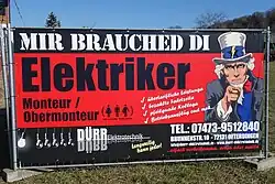 „Mir brauched di“ Wir brauchen dich - 1. Person Plural in Schwäbisch, gesehen in Ofterdingen Krs. Tübingen