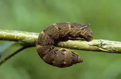 Die Raupen durchleben vier bis sechs Stadien. Sind sie ausgewachsen, ruhen sie für bis zu 24 Stunden und scheiden die letzten Reste der aufgenommenen Nahrung aus. Sie verfärben sich häufig braun oder violett und entfernen sich sodann, häufig im Schutz der Dunkelheit, von ihren Nahrungspflanzen auf der Suche nach einem geeigneten Platz zur Verpuppung.[7]