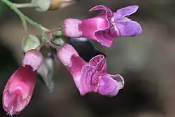Die Blüten sind 10 bis 12 Millimeter lang, zygomorph und fünfzählig mit doppelter Blütenhülle. Der Kelch ist glockig, meist rötlich oder braun überlaufen, schief gestutzt und mit kurzen, dreieckigen Zähnen versehen. Die Krone besitzt die typische Form der Schmetterlingsblüte, ist trüb purpurfarben bis bräunlich und wird beim Welken violettlich. Die Fahne ist gefaltet und kaum länger als das viel hellere Schiffchen, die Flügel sind etwas kürzer.