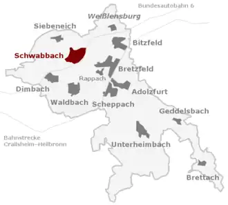 ![]() Lage von Schwabbach in der Gemeinde Bretzfeld