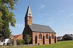Anstelle der 1711 errichteten alten Fachwerkkirche wurde 1875 eine neue Kirche aus Stein errichtet. Kaiser Wilhelm I. hatte mit einem Geschenk von 9000 Mark entscheidend zur Finanzierung beigetragen. 1887 erhielt die Kirche eine Orgel als Geschenk der kaiserlichen Familie zur 200-Jahr-Feier des Dorfes. Sie wurde 2006 restauriert.
