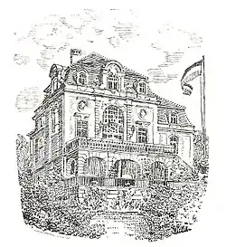 Der Entwurf des Corpshauses stammte vom Architektenbüro Eisenlohr & Weigle, Stuttgart. Sie entwarfen einen Bau mit hohem Mansarddach, dreistöckig zur Straße und vierstöckig zum Fluss. Dem Ziegelmauerwerk wurde eine Putzfassade vorgeblendet, die horizontal gegliedert wurde durch reich gestaltete und in sich wieder gekröpfte Gesimse. Die vertikale Gliederung erfolgte durch Riesenquader vortäuschende Pilaster und Ecklisenen. Die dominierenden Farben waren weiß und rosa. Das ausgebaute Dachgeschoss erhielt eine Reihe von dekorierten Gauben. Stuckierte Vasen und Zierreliefs verliehen dem Bau einen Anklang an den Jugendstil.