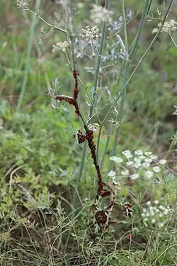 Die Tiere ernähren sich hauptsächlich von Schwalbenwurzen (Vincetoxicum), nur in geringerem Maß von anderen Wirtspflanzen,[7] wie Seidenpflanzen (Asclepias). Im Frühjahr findet man die Imagines häufig auf Zypressen-Wolfsmilch (Euphorbia cyparissias). Die rote Färbung ist ein Aposematismus (Warntracht), die Tiere sind giftig, da sie Toxine ihrer Wirtspflanze sequestrieren.[8] Sie werden im Nahrungswahlversuch von Fressfeinden verschmäht.[7] Dies gilt weniger ausgeprägt auch dann noch, wenn man sie im Experiment auf einer ungiftigen Wirtspflanze aufzieht; dies könnte an weiteren Abwehrmechanismen wie flüchtigen, von den Stinkdrüsen abgegebenen Wehrsekreten liegen. Möglicherweise lernen die Vögel aber einfach, warnfarbene Beute zu meiden.[9]