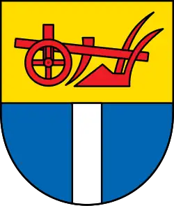 Blasonierung: „In geteiltem Schild oben in Gold ein roter Pflug, unten ein silberner Pfahl in Blau.“ |