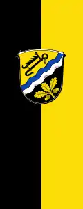 „Auf schwarz/goldener Flaggenbahn in der oberen Hälfte aufgelegt das Gemeindewappen.“[22]
