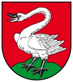 Blasonierung: „In Rot auf grünem Dreiberg ein schwarz bewehrter silberner Schwan.“