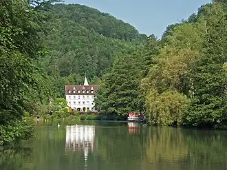Der See befindet sich im Westen der Stadt Bad Bergzabern am Ostrand des Wasgaus, wie der Südteil des Pfälzerwalds genannt wird. Er wird vom Erlenbach gespeist, der in östlicher Richtung bis Anfang der 2020er Jahre verrohrt war. In diesem Bereich schließt sich der Kurpark an.