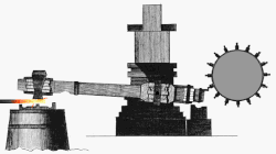 Historische Darstellung eines Hammerwerks mit drei Schwanzhämmern (Anfang des 18. Jahrhunderts) -