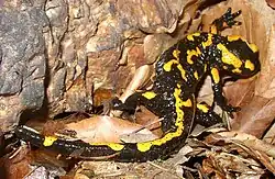 Feuersalamander (Salamandra salamandra); der bekannteste europäische Schwanzlurch | ||||||||||||