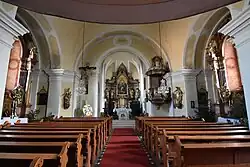 Katholische Pfarrkirche hl. Dionysius und Kirchhof in Wolfsberg im Schwarzautal | ||