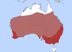 Die Schwarzbrustwachtel kommt weiträumig in Australien vor. Die Verbreitungsschwerpunkte sind der Osten und der Süden. Sie fehlt lediglich in Nordaustralien. Sie kam ursprünglich auch in ganz Tasmanien vor, ist dort mittlerweile aber weitgehend verschwunden, obwohl sie bereits in den 1940er Jahren dort unter Schutz gestellt wurde.[5] Ein Teil der Population sind Standvögel, ein anderer Teil wandert ungerichtet abhängig vom Nahrungsangebot. So wird die Schwarzbrustwachtel gelegentlich auch in der Nullarbor-Ebene gesichtet, obwohl diese Ebene mit ihrem ariden bis semiariden Klima nur eine spärliche Flora aufweist und damit im Regelfall keinen geeigneten Lebensraum für diese Wachtel bietet.[5]