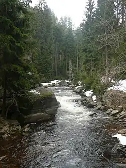 ![]() Die Schwarze Pockau südlich des Nonnenfelsens zwischen Kühnhaide und Pobershau | ||