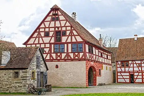 - ↑ Konrad Bedal: Bunter Schein: Quaderung in der Fläche. Das „Schwarzenberger Amtshaus“ aus Obernbreit. In: Franken unter einem Dach Heft Nr. 24/2000. Nürnberg 2000. S. 53.