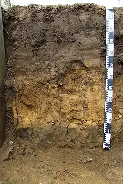 - Lackprofil des Bodens im Bereich des Schwarzerdeprofils Asel mit Erläuterungen