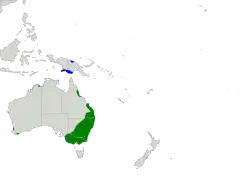 - ↑ Barrett, Geoff; Silcocks, Andrew; Barry, Simon; Cunningham, Ross & Poulter, Rory (2003). The New Atlas of Australian Birds. Melbourne: Royal Australasian Ornithologists Union. S. 114. ISBN 1-875122-09-5.