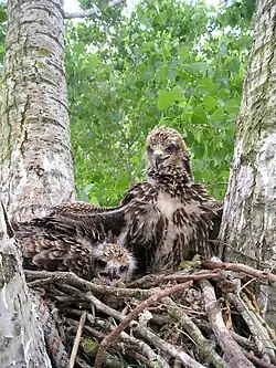 Mit etwa 32 Tagen beginnen die Jungvögel mit den ersten Flugübungen und können sich mit 40 Tagen schon etwas vom Horst entfernen. Insgesamt ist die Entwicklungsdauer von Nestlingen individuell aber sehr verschieden. Bis zum Ausfliegen können mehr als 50 Tage vergehen. Es wurden aber auch schon flügge Jungvögel mit weniger als 45 Tagen beobachtet.
