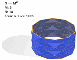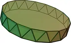 Daraus entsteht für jedes und ein Polyeder. In jedem dieser Ringe befinden sich gleichschenklige Dreiecke, also sind es insgesamt Dreiecke. Die Grundseite jedes Dreieckes hat nach trigonometrischen Überlegungen die Länge