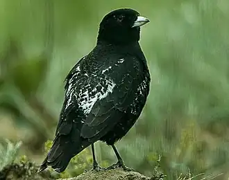 Das Gefieder adulter Männchen ist überwiegend schwarz. Im frisch vermauserten Gefieder wirken sie ab dem Herbst jedoch aufgrund breiter, gelblich- oder bräunlich-beiger Federsäume an Oberseite und Flanken hell geschuppt. Zum Frühjahr hin nutzen sich die Säume ab und sind nur noch schmal oder kaum noch vorhanden, so dass der Vogel nahezu schwarz erscheint.[1]