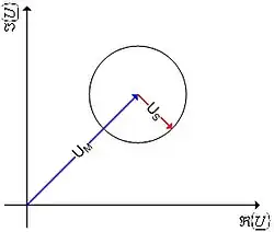 Bei Hochspannungsbetriebsmitteln beträgt die Netzfrequenz je nach Land 50 Hz bzw. 60 Hz. Will man beispielsweise die Impedanz eines Hochspannungskabels bei 50 Hz Netzspannung ermitteln, so speist man einen Strom mit einer geringfügig kleineren Frequenz (z. B. 49,9 Hz) ein. In einem solchen Fall sind "Störer" i. d. R. in der Nähe und im Betrieb befindliche Hochspannungsbetriebsmittel (Transformatoren, Leitungen etc.), welche entsprechend mit Netzfrequenz einkoppeln. Abbildung 1 zeigt ein Zeigerdiagramm mit den Spannungszeigern in der komplexen Ebene, resultierend aus einem mit Messfrequenz eingespeisten Strom. Durch die Frequenzabweichung zwischen Mess- und Störfrequenz rotiert ("schwebt") der Zeiger . Nach einer vollständigen Schwebeperiode (eine Umdrehung des Zeigers ) kann aus der über die Zeit erfassten Spannung die Messspannung ermittelt werden. Hierzu wird das betragsmäßige Maximum sowie das betragsmäßige Minimum herangezogen. Gemessen wird zunächst