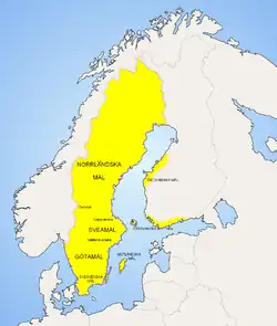 Ungefähr im 6. Jahrhundert n. Chr. schlossen sich mehrere nordgermanische Stämme in Skandinavien erstmals zu größeren Stammeseinheiten zusammen und drängten die zuvor von Nordosteuropa eingewanderte und aus finnischen Völkern (Samen/Lappen, Finnen) bestehende Vorbevölkerung immer weiter nach Norden ab.[5] Bei der Entstehung des schwedischen Volkes spielten die am Mälarsee bzw. in Svealand (Mittelschweden) ansässigen Svear und die in Götaland (Västergötland, Östergötland und Småland) ansässigen Gauten die wichtigste Rolle. Die nordgermanischen Stämme hatten in Alt-Uppsala ein gemeinsames politisches und kulturelles Zentrum.