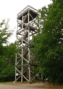 Von einem in der Nähe befindlichen 22 Meter hohen Aussichtsturm aus Holz, der 2009 als Nachfolger für einen 18 Meter hohen hölzernen Aussichtsturm errichtet wurde, kann man weit über die Elbe schauen. In unmittelbarer Nähe befindet sich ein 344 Meter hoher Funkturm (Sender Höhbeck), der Ende der 1970er Jahre erstmals eine störungsfreie Nachrichtenverbindung zwischen West-Berlin und Westdeutschland ermöglichte.