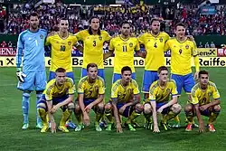 Die schwedische Fußballnationalmannschaft (schwedisch Svenska fotbollslandslaget) vertritt Schweden bei Fußballländerspielen. Der Spielbetrieb der Männernationalmannschaft wird ebenso wie bei der Frauennationalmannschaft und den diversen Jugendauswahlen vom Svenska Fotbollförbundet, dem schwedischen Fußballverband, organisiert. Größter Erfolg der Landesauswahl ist neben einer Goldmedaille bei den Olympischen Spielen 1948 in London ein Vizeweltmeistertitel. Insgesamt nahm die Mannschaft bisher an elf Welt- und fünf Europameisterschaften teil, wobei sie jeweils einmal als „Gastgeber“ fungierte. Schweden ist das erste Land, das 1.000 Länderspiele bestritten hat.[2] Außer 1944 konnten auf Grund der schwedischen Neutralität auch Spiele in den Weltkriegsjahren 1914–1918 und 1939–1945 stattfinden, in denen in vielen anderen Ländern keine oder nur sehr wenige Länderspiele stattfanden.