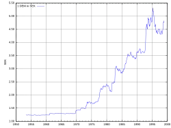 - ↑ Website der Deutschen Bundesbank, Statistiken, Zeitreihen, Historische DM-Devisenkurse der Frankfurter Börse, abgerufen am 16. Mai 2010 ( vom 8. März 2012 im Internet Archive)