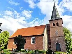 Das Kirchengebäude der evangelischen Kirche in Schweiburg besteht seit 1762. 2012 – anlässlich des 250-jährigen Bestehens – erhielt die Kirche ihren Namen St. Vitus. Bis dato war sie eines der wenigen Gotteshäuser der Region ohne Namen gewesen. Der Name wurde vom Gemeindekirchenrat mit Blick auf die ehemalige Kirche St. Vitus des im Meer versunkenen Dorfes Jadele ausgesucht. Auch in Schweiburg gab es vor dem Bau der Kirche bereits eine Kapelle, die im Meer versank.[17]