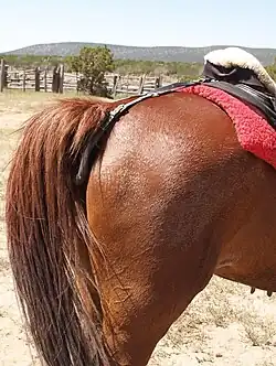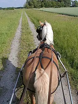 Die Schweifmetze ist dasjenige Teil, das direkt unter der Schweifrübe liegt. Über den Schweifriemen, der auf dem Rücken des Zugtieres aufliegt, ist sie verbunden mit dem Kammdeckel (beim Einspänner mit dem Selett) und verschafft dem Geschirr damit einen guten Sitz.