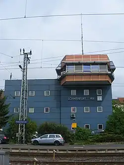 Der Schweinfurter Hauptbahnhof (abgekürzt: Schweinfurt Hbf) ist der größte Bahnhof Schweinfurts. Der Bahnhof liegt auf Oberndorfer Gemarkung und wurde 1874 als Hauptpersonen-, Güter und Rangierbahnhof eröffnet. Er hieß bis 1893 Bahnhof Oberndorf-Schweinfurt, danach bis 1903/1904 Centralbahnhof Schweinfurt und seitdem Schweinfurt Hauptbahnhof.[3]