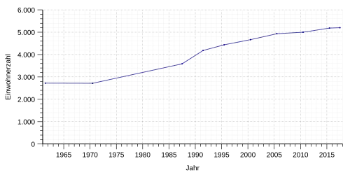Zwischen 1988 und 2018 wuchs die Gemeinde von 3665 auf 5242 Einwohner bzw. um 43 %.