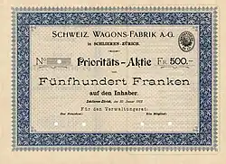 | Schweizerische Wagons- und Aufzügefabrik AG Schlieren-Zürich